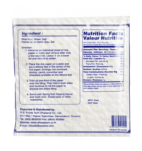 Our 22cm square rice paper wrappers are perfectly sized for rolling. Their delicate, translucent texture becomes pliable quickly when dipped in warm water. This makes them easy to fill and roll, even for beginners. You can create beautiful, neatly wrapped spring rolls filled with your favorite fresh ingredients. Think crisp vegetables, aromatic herbs, tender cooked meats, or succulent seafood.